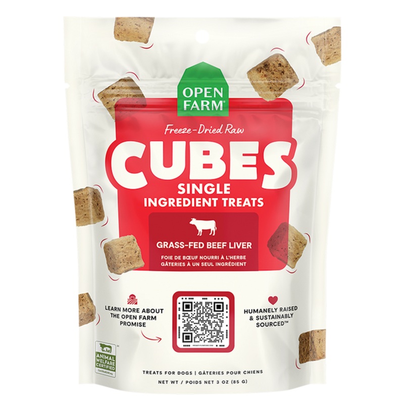 Open Farmbeef livercube treats are made with one single ingredient Grass-fedbeef liver! These simple protein-packed treats deliver an incredible taste your dog will crave perfect for serving as a reward for any occasion.As with all Open Farmproducts, our ethically sourced, farm-to-bowl ingredients are 100% traceable, and are crafted in a way that respects animal welfare and the planet.