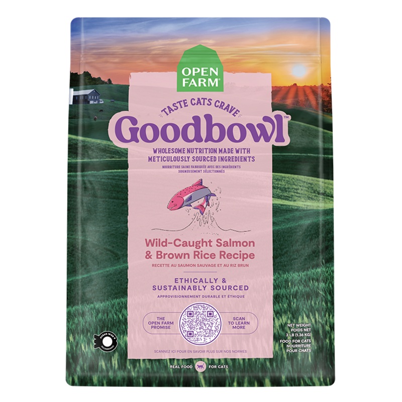 Open Farm GoodBowl Wild-Caught Salmon & Brown Rice Recipe Cat Food is formulated to meet the nutritional levels established by the AAFCO Cat Food Nutrient Profiles for Adult Maintenance.