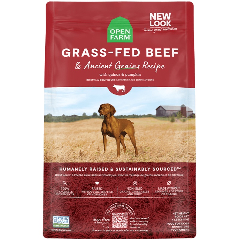 This tasty high protein, gluten-free meal is loaded with 100% grass-fed (and finished) thats free of antibiotics and added growth hormones, wholesome grains like steel-cut oats, quinoa, brown rice, and chia seeds and superfoods like coconut oil, pumpkin and turmeric. Its dry good-for-your-pup food made without peas, potatoes and legumes.