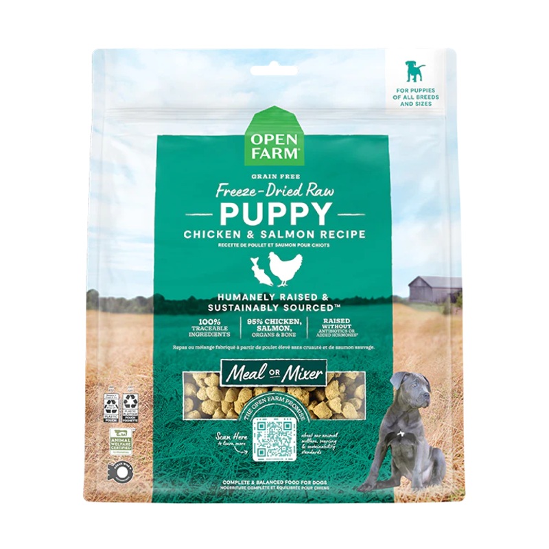 Open Farm Freeze-Dried Raw Puppy Recipe Dog Food is formulated to meet the nutritional levels established by the AAFCO Dog Food Nutrient Profiles for All Life Stages including growth of large size dogs (70 lbs. or more as an adult).