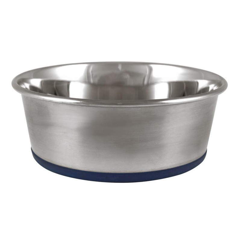 OurPets bowls are made of high-quality, heavy-duty stainless steel with a permanently-molded rubber ring on the base of the bowl that prevents sliding and noise. They are dishwasher-safe and scratch-resistant.