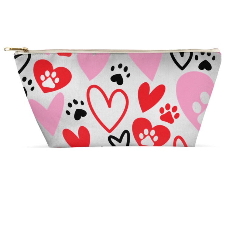 Paw Heart Accessory Pouches T-Bottom 8.5×4.5 inch w/ White Zipper Tape