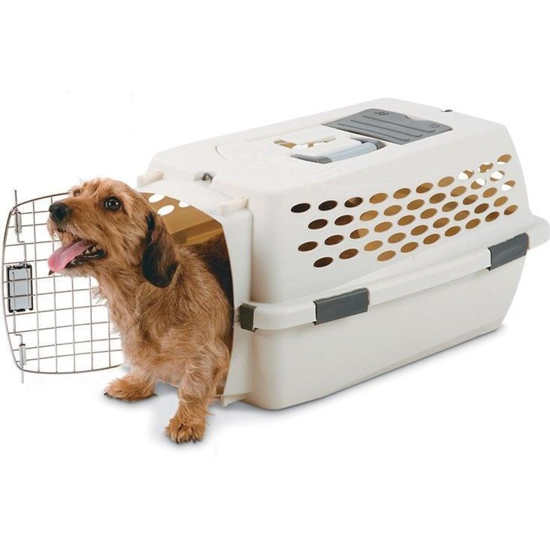 Perfect for housebreaking, the Petmate Ultra Vari Kennel is ideal for training and traveling. Features include tough durable construction with easy-open squeeze latch, wire vents on side walls, interior moat to keep pets dry and tie-down strap holes on the