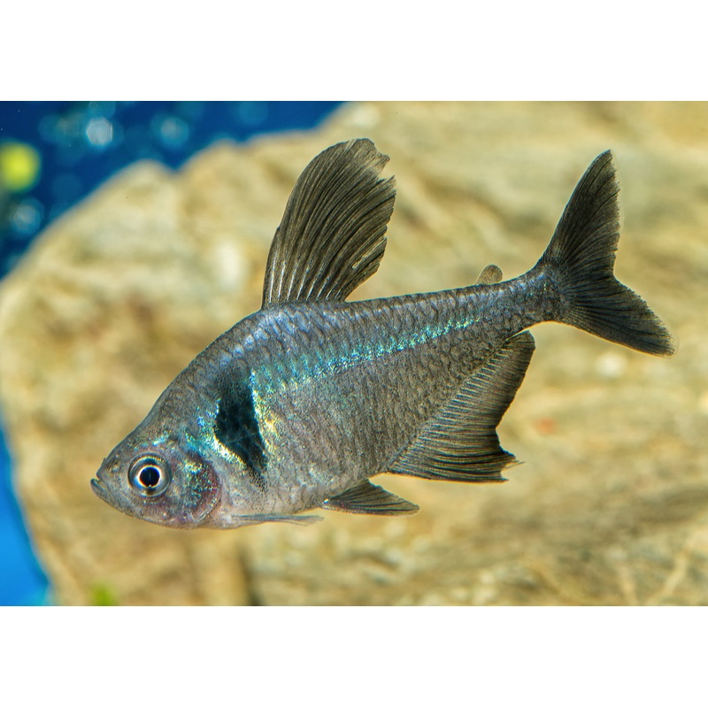 The Black Phantom Tetras are cute and fun little schooling fish. They are from northern Paraguay and central Brazil. Easy to care for and suit for aquarists of all experience levels. Looks best in a planted tank. Live TetraFish can be delivered to your door by Coburg Aquarium with 100% satisfaction.