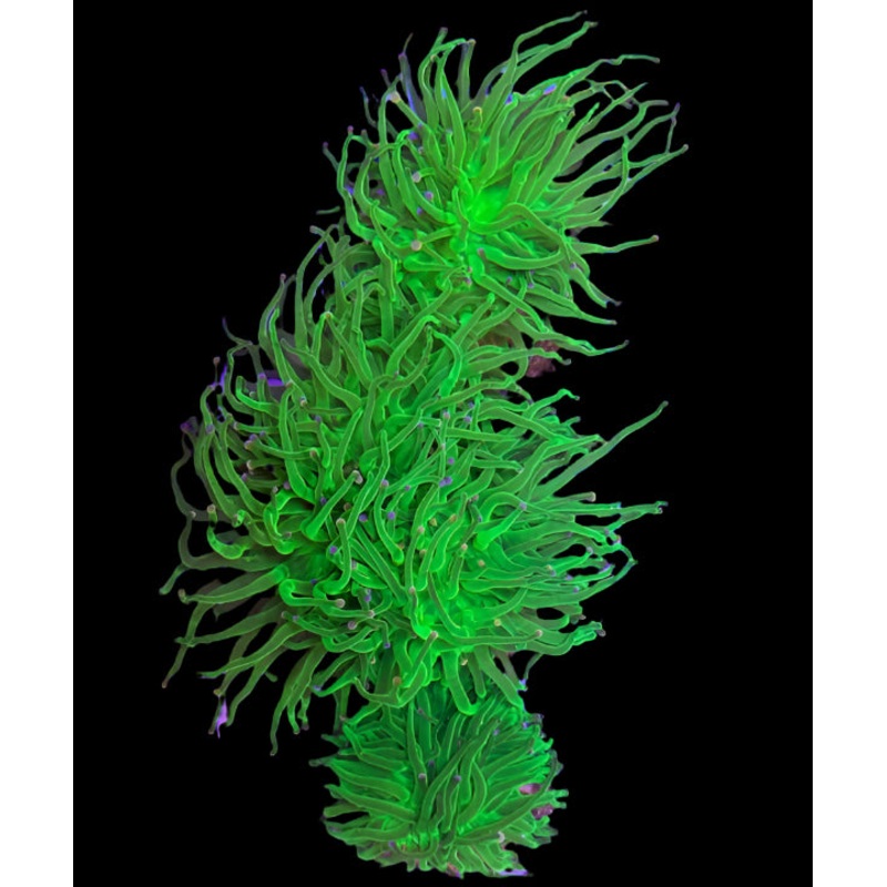 Euphyllia glabrescens- This Biota Pink Tip Neon Green Torch frag is bright neon green, especially in actinic lighting. These frags come from cultured corals not taken from the reef.Give plenty of space for this stinging coral to grow away from other specie