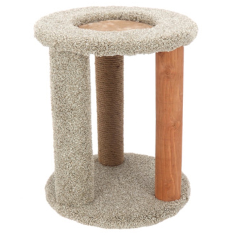 Playground-N-Lounge is the perfect kitty playground with a penthouse pedestal. Three scratch posts offer a variety of scratch surfaces and the sleeping level has a paw pleasing textured surface for cat comfort.Carpet colour may vary. Not available to ship,