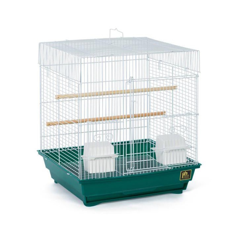 Prevue pet products roomy economy bird cage features a large front-opening door, top carry handle, removable bottom grille and pull-out bottom tray for easy cleaning.Our bird cage includes two plastic hooded cups, two wood perches and is designed for parak