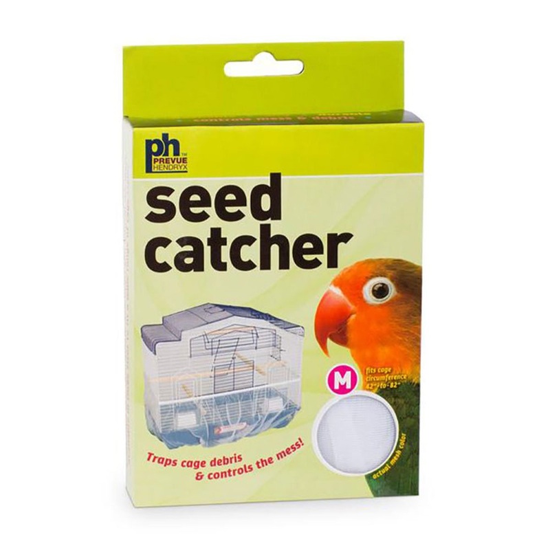Prevue pet products mesh seed catcher helps bird owners control the debris created when birds eat. Designed to fit over the cup area of your bird cage, seed catcher is held in place with a heavy elastic band. Versatile, washable nylon mesh comes in assorte