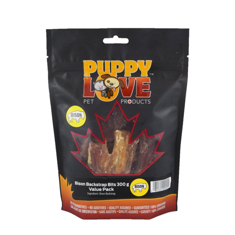 These 2 to 3 inch pieces and are a medium lasting chew/treat for all dog sizes. Bison Backstrap Bits are a good source of protein and promotedental health.Moisture:10.3% | Protein: 88.8% | Crude Fat: 3.06% | Crude Fiber: 52.8%