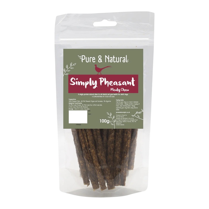 Pure & Natural Simply Pheasant Meat Sticks 100g Single-Protein Dog Treat for Healthy Teeth and Gums