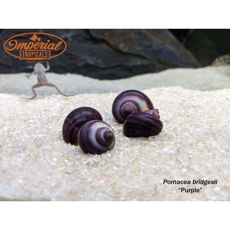 Remarks: Purple mystery snails have a purple shell and a dark foot.