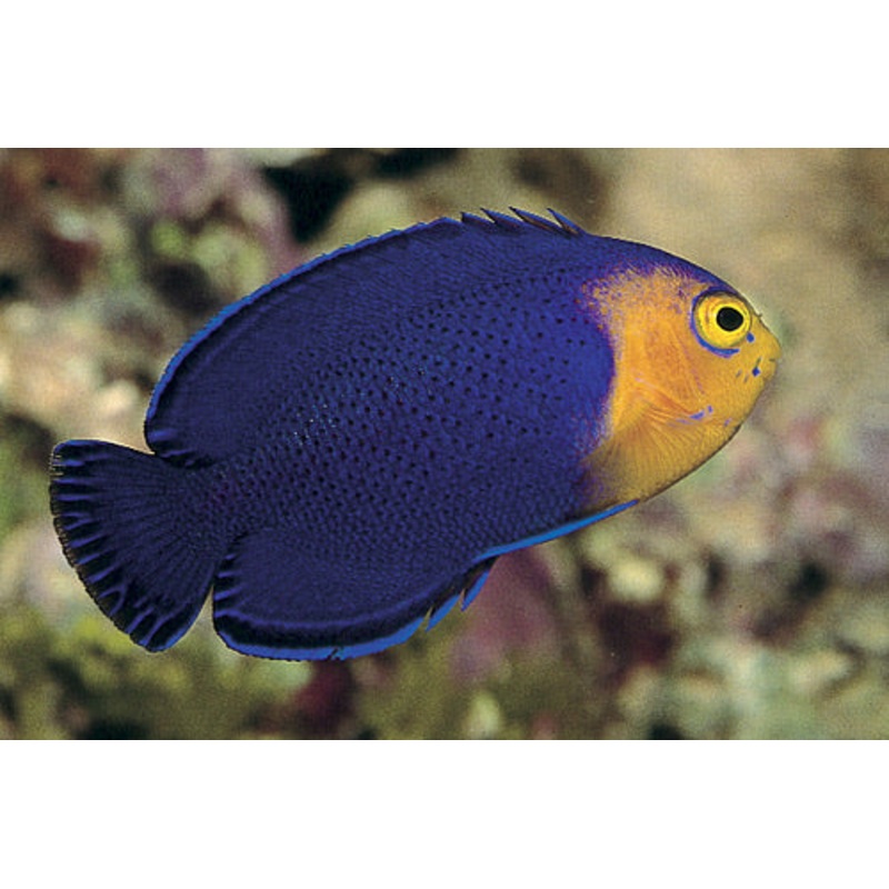 Centropyge argiThe Pygmy Angelfish boasts a moderate care level and a stunning color form of blue and orange. With its semi-aggressive temperament, this omnivorous fish makes a perfect addition to a reef tank, as long as water conditions are maintained wit