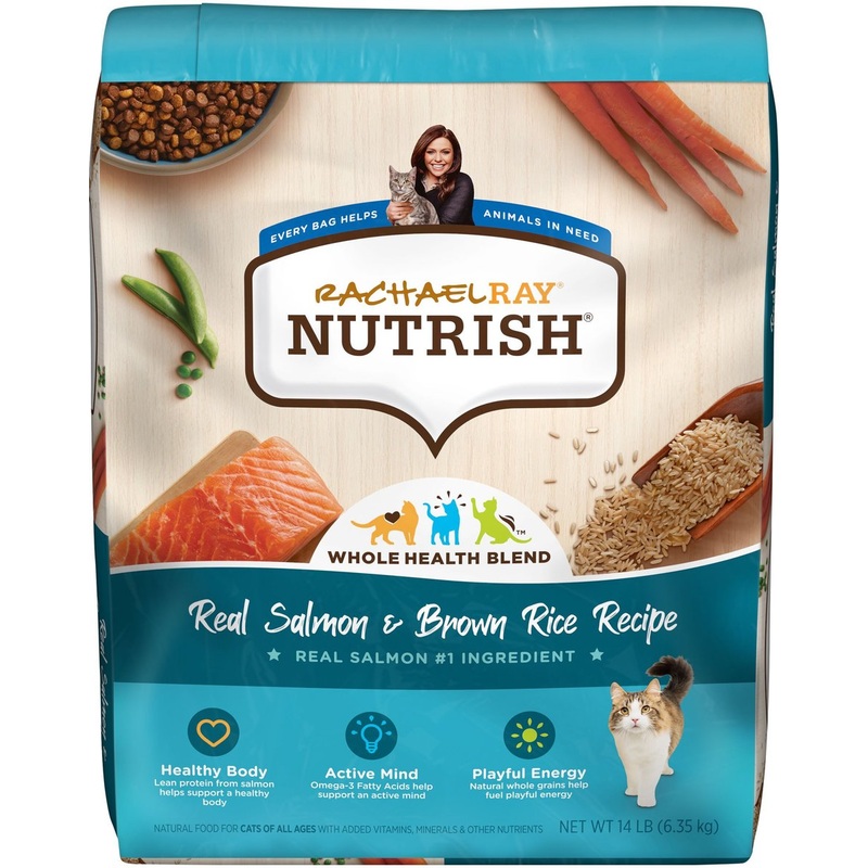 Rachael Ray Nutrish Real Salmon & Brown Rice Recipe is made with simple, natural ingredients, like real salmon, which is always the number one ingredient, combined with wholesome brown rice, vegetables and essential vitamins, minerals and taurine. Plus theres no ground corn, wheat or soy.