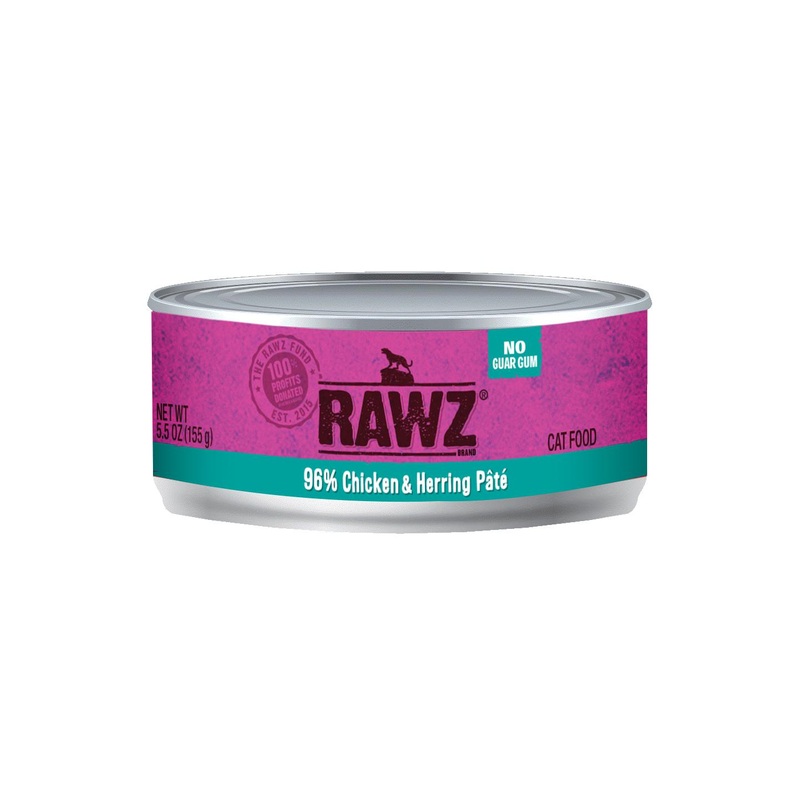 Description Suggested FeedingIngredientsGTD AnalysisRAWZ 96% Chicken & Herring Cat Food Can is a premium blend of chicken, chicken liver, and herring to craft a food free of guar gum, xantham gum, cassia gum, and manufactured fillers for optimal hydration.
