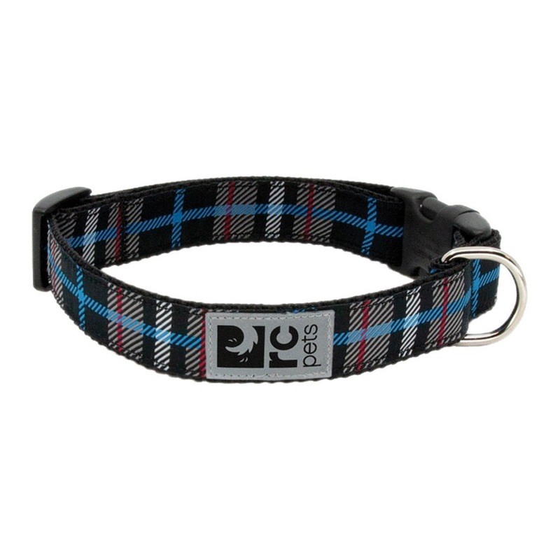 RC Pets Clip Collar Black Twill Plaid 1″ Width Medium