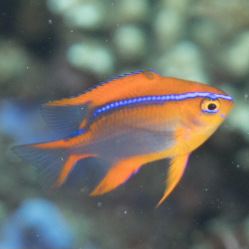 The Red Chromis is prized for its vivid coloration and hardy nature. It appreciates mature rockwork with hiding crevices and open swimming space for stressfree living. Its diet is omnivore (zooplankton, pellets, flakes), so offer a varied selection of froz