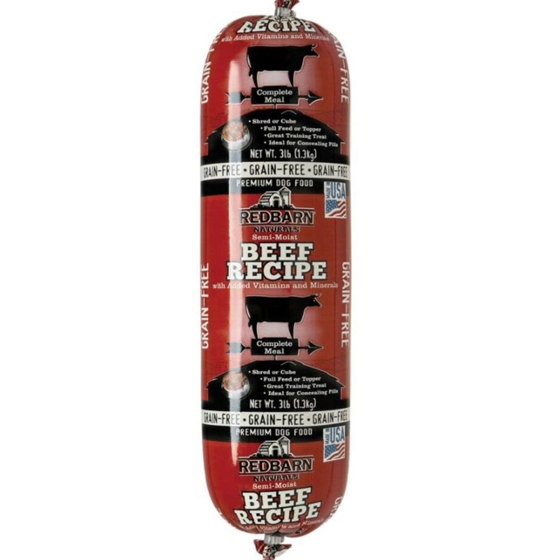RedBarn Naturals Grain Free Beef Rolled Dog Food, 3Lbs. has no corn, wheat or soy. Has no fillers. Highly palatable and easily digestible. Made in the USA.Redbarn 3# Gf Adult Beef Roll