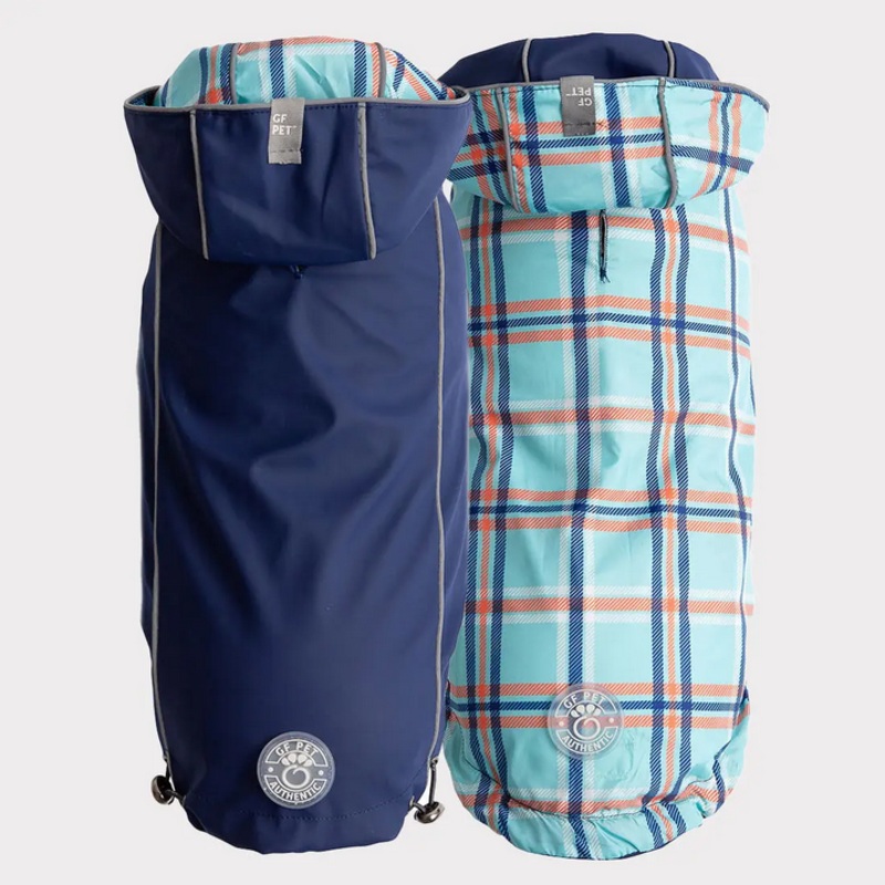 Reversible Dog Raincoat (Navy & Plaid) | GF Pet XXS