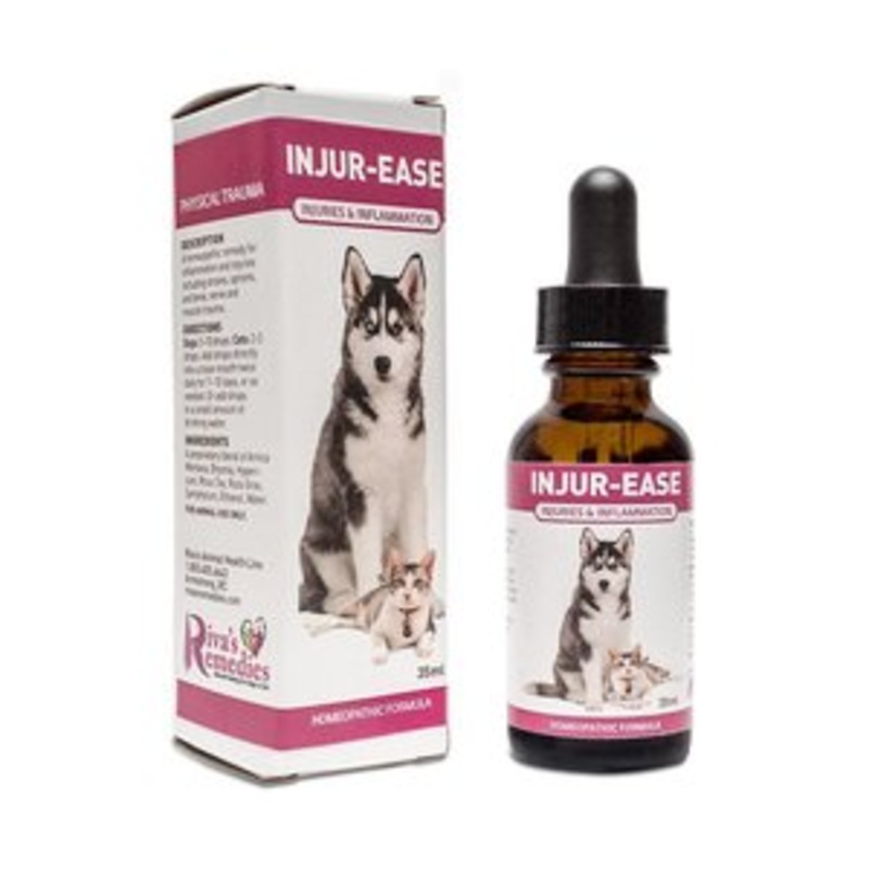 Ingredients:A proprietary blend of Arnica Montana, Bryonia, Hypericum, Rhus Tox, Ruta Grav, Symphytum, Ethanol and Water.Directions:Add 5 -10 drops drops directly into your dogs mouth twice daily for 7 - 10 days or as needed without food. They can also be