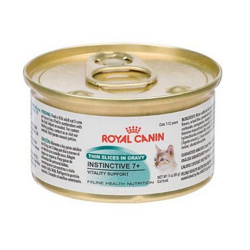 With so many canned cat food options out there focused on ingredients, how do you know whats best? Royal Canin knows theres a science to itresearching each pets nutritional needs to create a diet with the precise combination of nutrients needed to live a magnificent life.Royal Canin Adult 7+ Thin Slices in Gravy is formulated for mature cats, 7 to 12 years old, and made with the balanced nutrition your senior cat needs for optimum feline health. Our formula features the ideal ratio of energy derived from proteins, fats, and carbohydrates for healthy aging. Adapted phosphorus levels support kidney health. And highly digestible proteins for healthy digestion. It makes all the difference in your cats health and satisfies their cravings.With nearly 50 years of scientific research and observation, Royal Canin continues to deliver targeted nutrition to feed every pets magnificence. Not satisfied? Then neither are we. Our formulas are 100% satisfaction guaranteed.