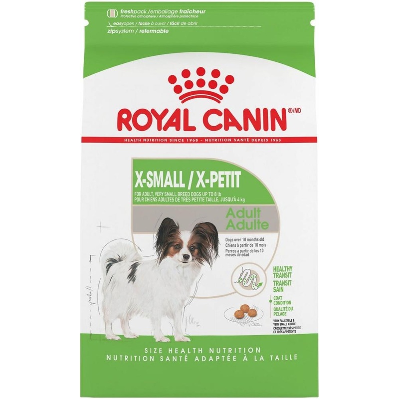 Royal Canin X-Small Adult dry dog food is targeted nutrition to support your mini dogs playful nature and petite size. Its formulated with adapted energy levels to meet the high energy needs of miniature and toy breed dogs. Ideal levels of EPA and DHA support healthy skin and a beautiful, shiny coat. Highly digestible proteins and precise levels of fibers help promote healthy digestion. This extra-small and highly palatable kibble is designed for tiny teeth and jaws, pleasing even the pickiest of eaters. Add a variety in texture with Royal Canin Adult Beauty wet dog food. And when your dog reaches their later years, theres Royal Canin X-Small Adult 8+ and X-Small Aging 12+ to help keep them happy and healthy as they age.