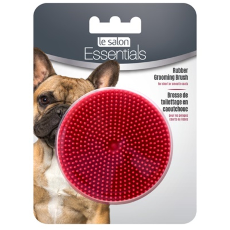 Le Salon Essential Round Rubber Grooming Brush, 3in diameter. Excellent for removing loose, shedding hair. At bath time, it is also handy for sudsing and cleaning. Recommended for small short and/or smooth coated breeds. This brush should not be used on ma