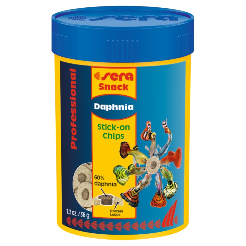 The stick-on chips for healthy variation and exciting observationsDue to 60% Daphnia in the core, sera Daphnia Snack Professional is particularly suitable for stimulating metabolism. The small crustaceans rich in minerals and ballast substances are an exce