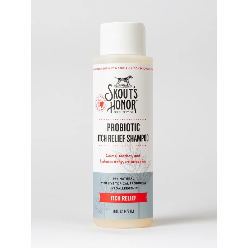 Our Probiotic Itch Relief Shampoo is perfect for pets with dry, itchy, irritated and sensitive skin. It helps support a healthy microbiome to defend against common skin problems and bad bacteria. Topical probiotics block & defend against harmful bacteria.