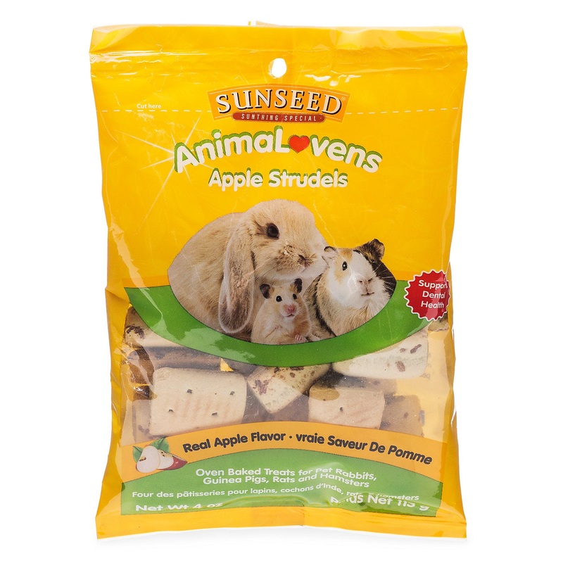Oven-baked natural apple treats with a hard crunchy texture that help with small animals tooth conditioning. AnimaLovens? Apple Strudels are baked for that ideal texture your pet loves and needs to gnaw on to maintain strong healthy teeth. The combination