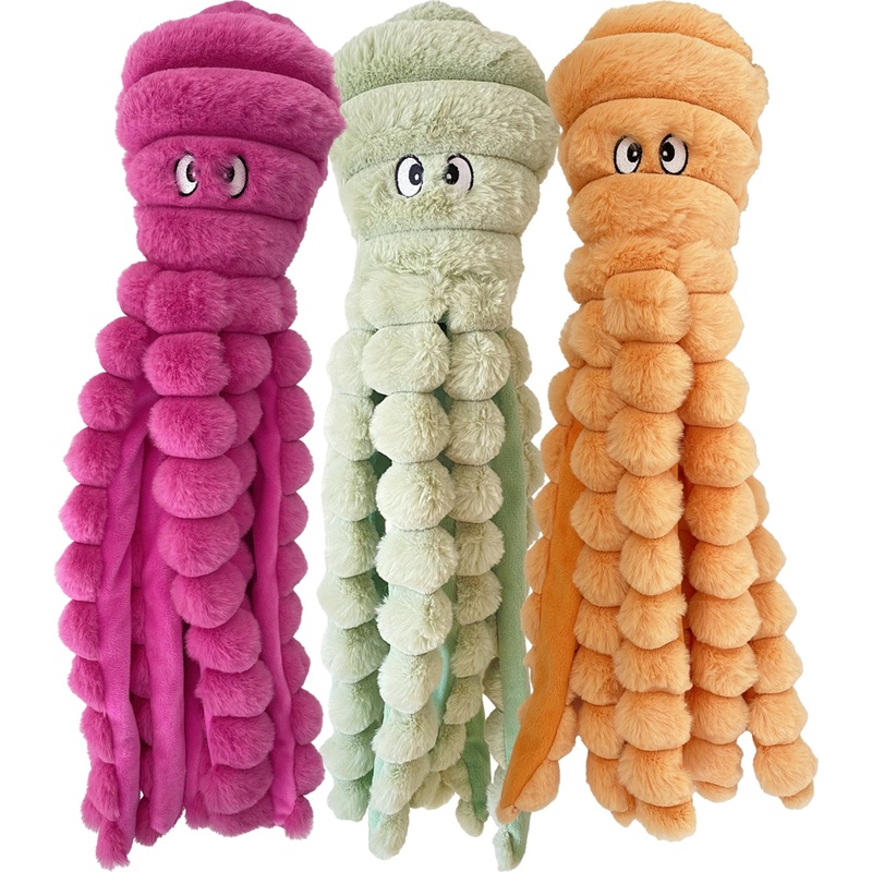 The Super Soft Octopus is a cuddly yet playful toy designed for medium to large dogs. With its plush body, multiple legs, and soft textures, its perfect for snuggles, light tugging, and indoor fun. A squeaker inside adds extra excitement to playtime!