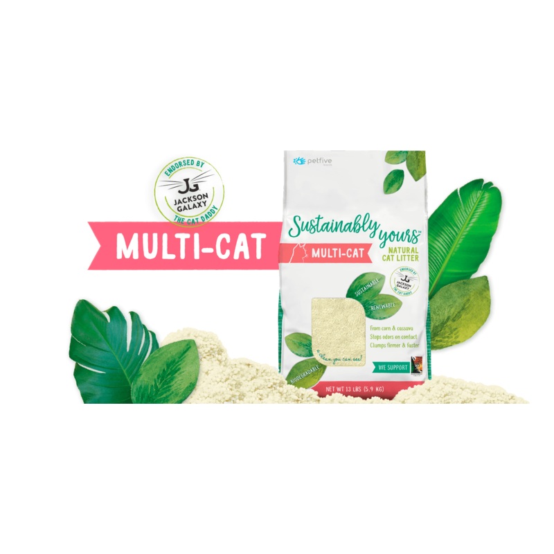 WORLD-CLASS ODOR CONTROL.EASY CLEANUP. BETTER FOR THE PLANET.Who says you can't have it all?With Sustainably Yours Multi-Cat litter, you dont have to sacrifice clumpability and odor control when you decide to go clay-free!The secret is our special blend of