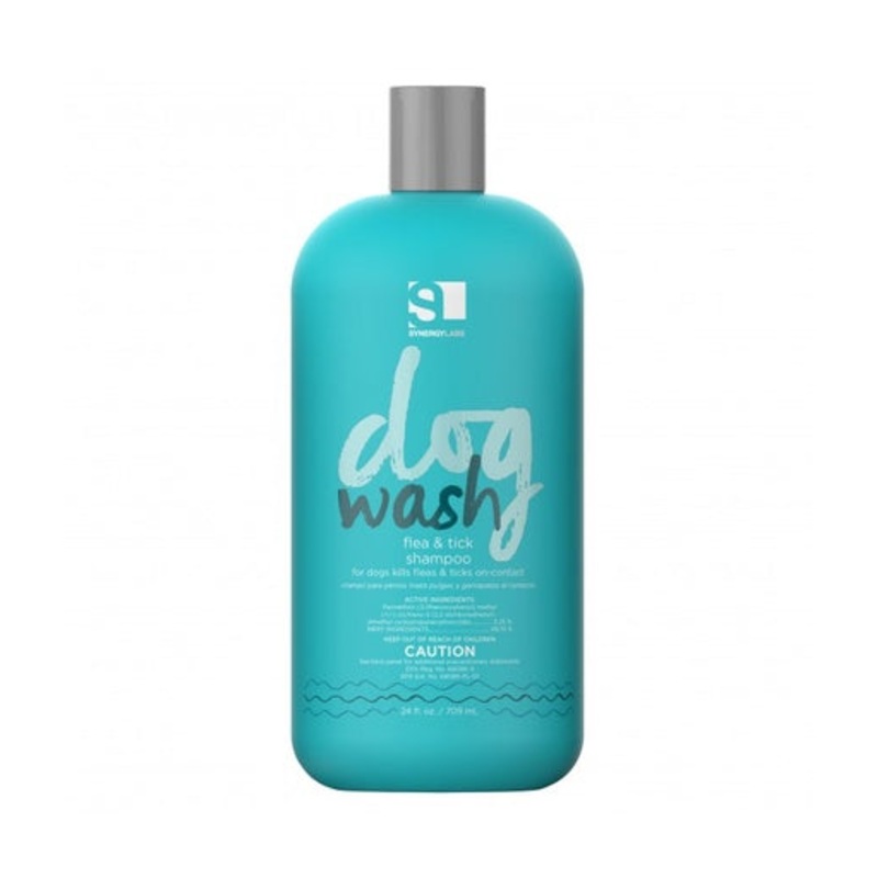 Dog Wash Flea & Tick Shampoo by Synergy Labs effectively eliminates fleas and ticks on ing permethrin. This shampoo also gently cleans and exfoliates your pets coat, leaving it soft and lustrous. It enhances overall hair condition, shine, and luster, ensur