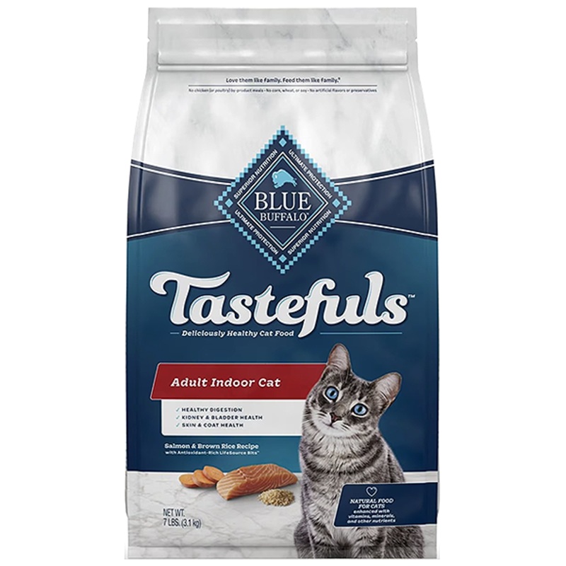 Blue Buffalo Tastefuls Indoor Natural Adult Dry Cat Food delivers tasty, balanced nutrition to help keep your kitty feeling healthy and satisfied. Designed to support the health and well-being of indoor cats, this recipe is packed with quality natural ingr