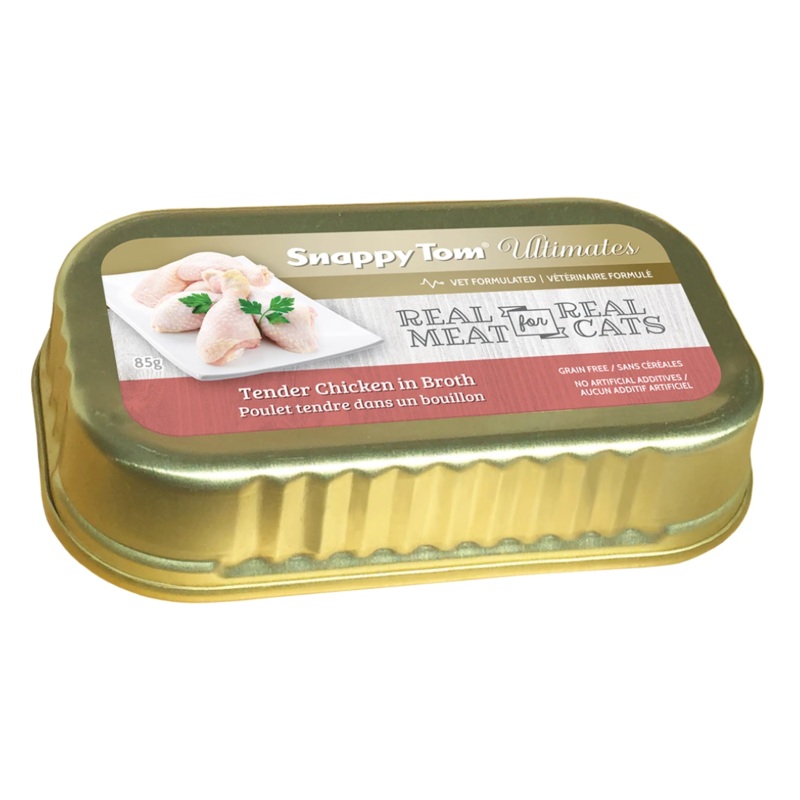 Snappy Tom Ultimates Premium Cat Food carries a whole line of grain free protein-rich natural cat food made from chicken and tuna crafted into recipes that deliver the nourishment and flavor that your cat needs.