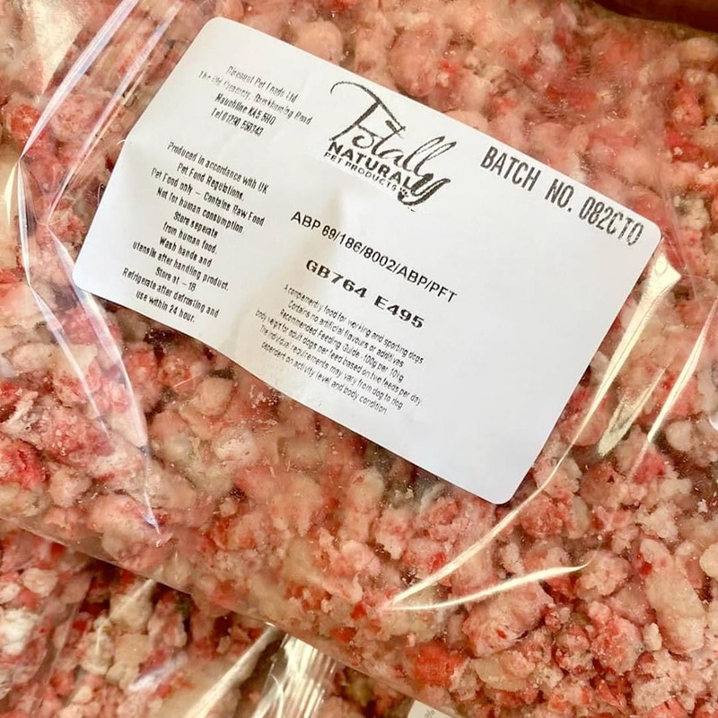 This firm favourite with most dogs is a mixture ofChicken &Rabbit with the addition of 10% bone and 10% offal. This mince is considered Complete by most experts and should give your dogs everything that they nutritionally need.To ensure that your dog is ge