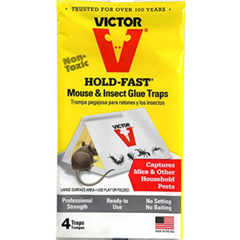 Mouse glue trap that is pre-baited and nonpoisonous. Lays flat without a lip. Lock Tab tent design appeals to a mouses curiosity. Peanut butter scent. Package of 2.