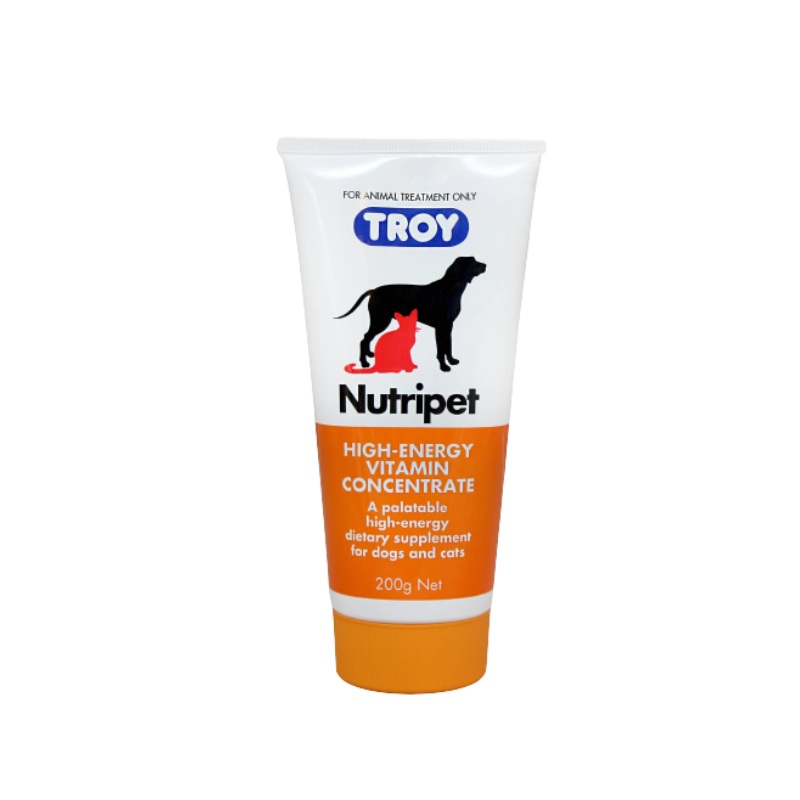 Indications for use:Troy Nutripet is a vitamin and calorie supplementation for inclusion in the diets of dogs and cats when dietary levels may be low. Also used as an appetite stimulant and during convalescence.