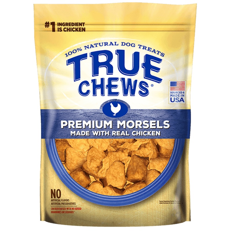 Delivering big chicken flavor in a small, bite-sized dog treat, these Premium Morsels dog treats are made in the USA with real chicken with no added hormones or steroids*. Just 100% natural ingredients, with no grains, artificial flavors or artificial preservatives.