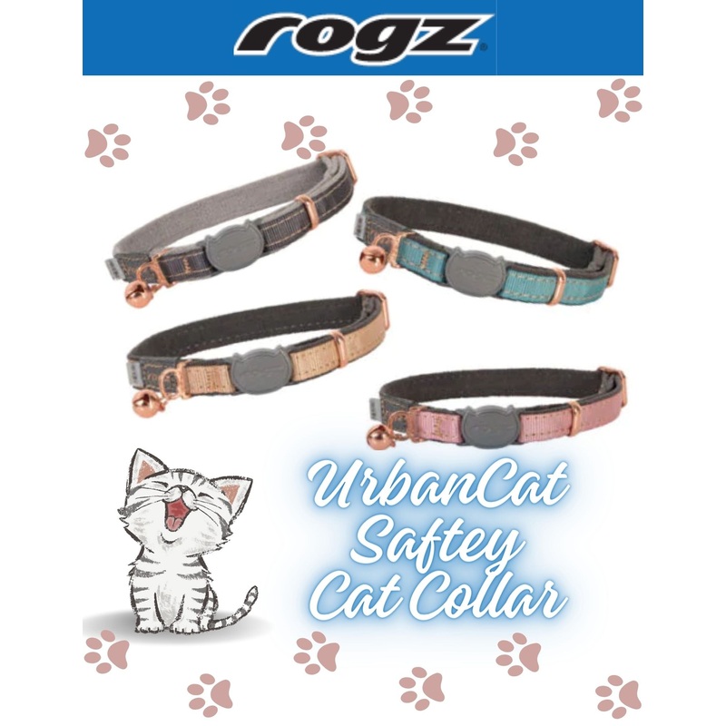 Rogz UrbanCat Safety Collar is recommended for everyday use and identification. Made from a soft, plush material finished with rose gold trims, this collar is ideal for sensitive cats who love grabbing attention while they explore. The break-away safety bu