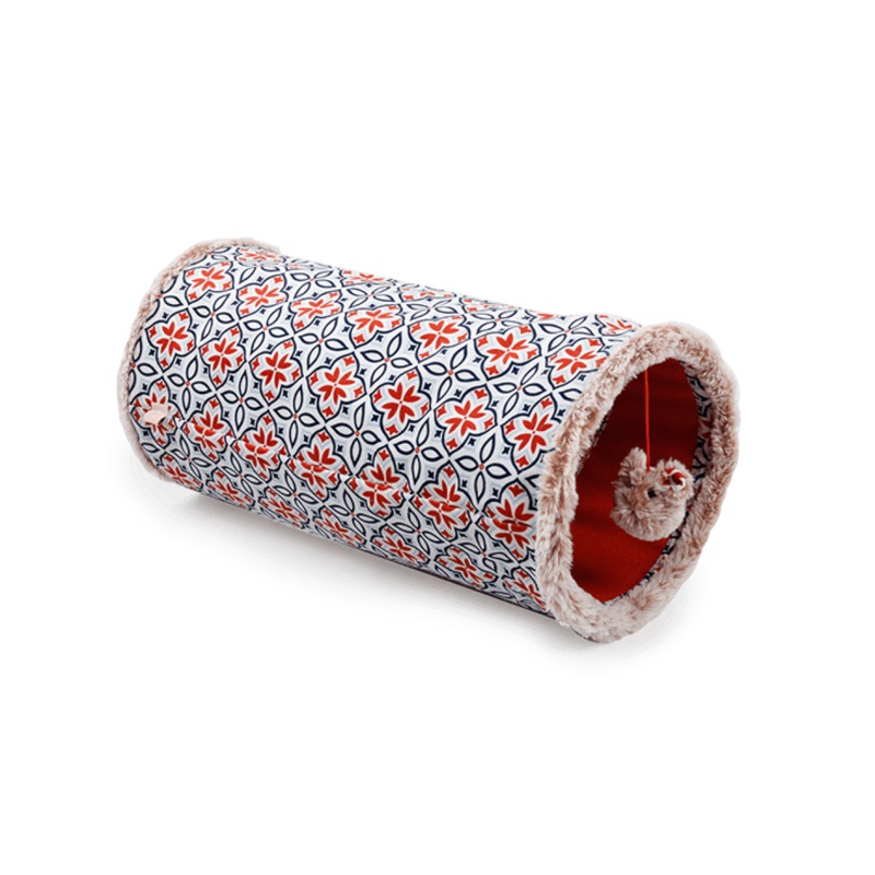 This tunnel is great for your cat!Cats love to play, sleep and hide. That is all possible in this tunnel. Wonderfully soft, and with a retro look.The tunnel makes wonderful crackling noises and is also equipped with a fun toy that cats can play with for ho