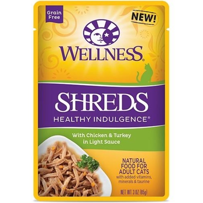 Wellness Healthy Indulgence Natural Grain Free Shreds with Chicken and Turkey in Light Sauce Cat Food Pouch