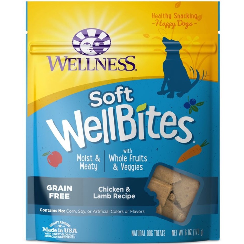 Wellness Natural Grain Free WellBites Soft Dog Treats are wholesome, all natural, soft, tasty, bite-sized dog treats made in USA only-100 % Grain Free treats!-Natural soft and chewy dog treats made in USA only-Each dog treat is made with wholesome meats, f