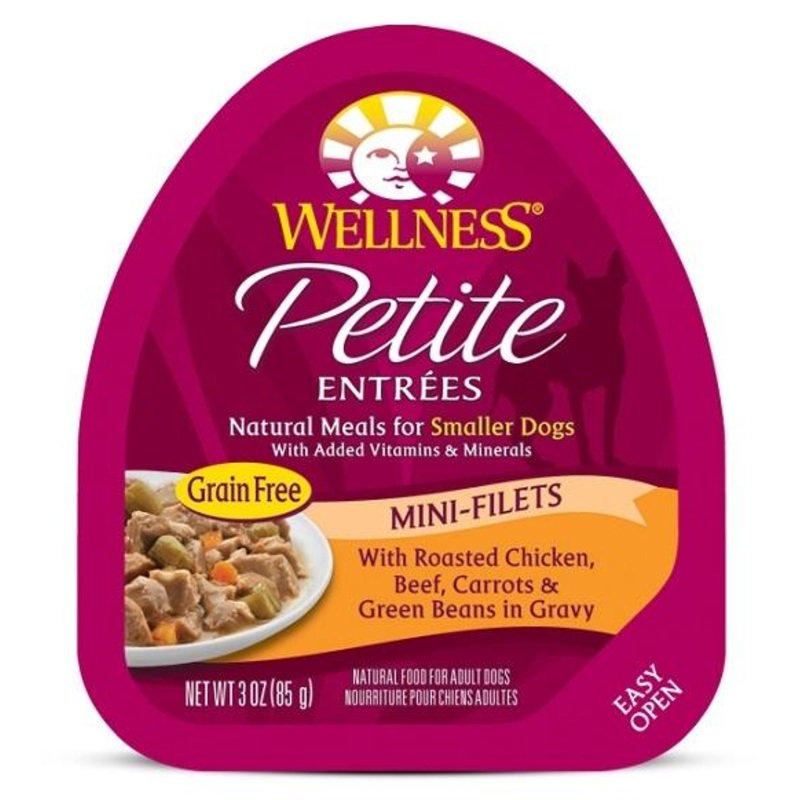 Wellness Petite Entrees Mini-Filets Grain Free Natural Roasted Chicken and Beef Recipe Wet Dog Food Wellness Petite Entrees Mini-Filets Grain Free Natural Roasted Beef Recipe Wet Dog Food was created just for small breeds. If you have a small breed dog who