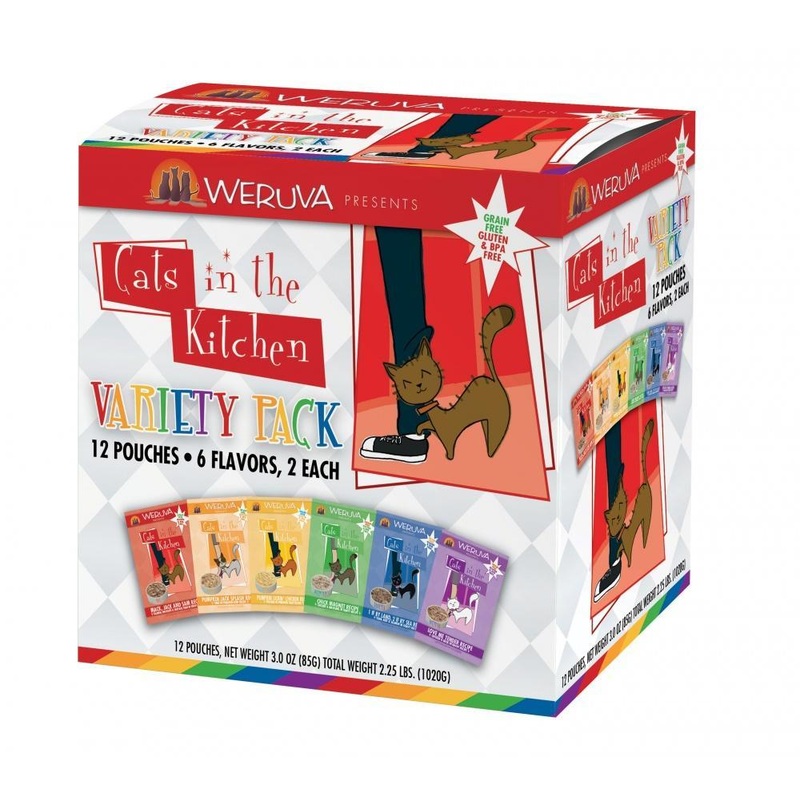 We love our cats, and they love us back. But there's nowhere they love us more than in the kitchen! That's why Weruva has created a Cats in the Kitchen Variety Pack; a grain-free mix of 6 recipes in 3 ounce pouches. Whether you aren't sure which flavor you