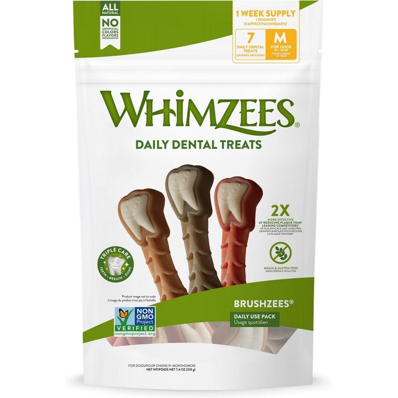 - CHEW 1X DAILY: Whimzees Daily Dental Medium Brushzees fights bacteria every day to promote oral health