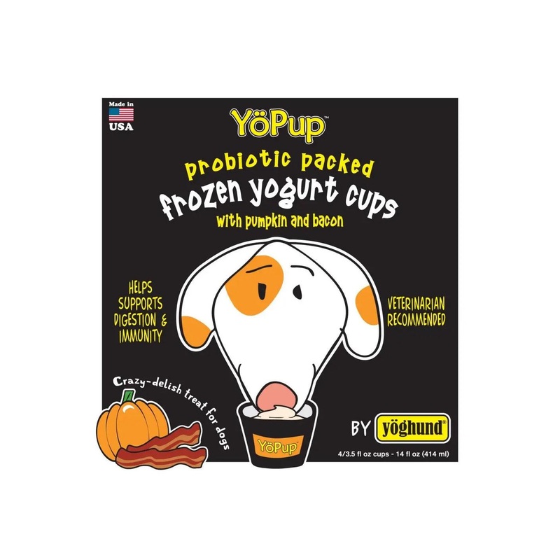 DescriptionIngredientsGTD AnalysisNote: Frozen foods, bones, and supplements are eligible for store pick up or local delivery only and require signature upon receipt (we don't want it to thaw on your doorstep!).Yoghund Pumpkin and Bacon Frozen Yogurt Treat