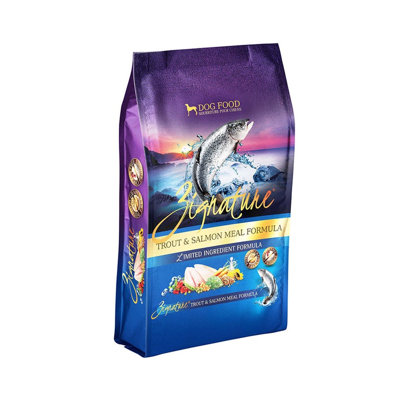 Our Trout and Salmon Meal Formula dog food come from the chilly water of the Northwestern United States. This grain free dog food is a great source of protein and heart-friendly Omega-3 fatty acids, making this the best dog food for your pup. Trout and Salmon are good for younger pups with any pet food allergy, making this formula a good start for elimination diets and a fantastic puppy food. The healthiest pet food for your pup is grain free, full of powerful antioxidants, and is rich in low glycemic carbohydrates, making this formula the healthiest dog food on the market. Physiologically Tuned, limited ingredient premium food for dogs. Hypoallergenic meat first recipe, with no Corn, Wheat, Soy, Dairy, or Chicken, Chicken Eggs, or Chicken By-Products. AAFCO stands for Association of American Feed Control Officials. Zignature recipes are formulated to meet all the nutritional levels established by the AAFCO Dog Food Nutrient Profiles. This certifies that Zignature is a nutritionally complete product that can be fed to your pet as its sole ration without adding any other substance except water. We use a limited ingredient formula because in most cases simple is best. Zignature is formulated to serve your canine companions needs by delivering the highest quality, well balanced diets. Our limited ingredient formula uses No Potatoes, No Grain, No Chicken, No Eggs, No Glutens, No Tapioca, No Corn, & No Soy. Our Single Animal Protein Formulas are extremely palatable, encouraging a healthy appetite and providing high-quality protein for strong muscles.